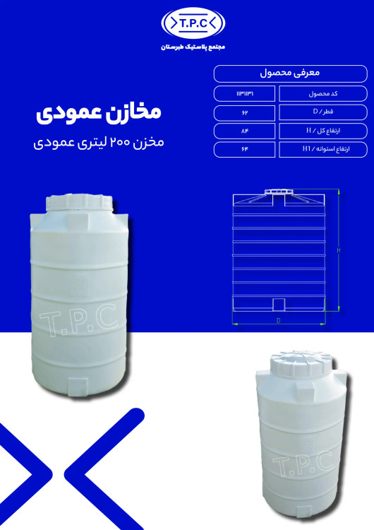 مخزن 200 لیتری عمودی 3لایه آنتی باکتریال طبرستان