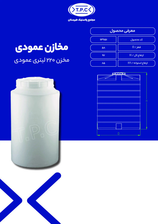 مخزن 220 لیتری عمودی 3لایه آنتی باکتریال طبرستان