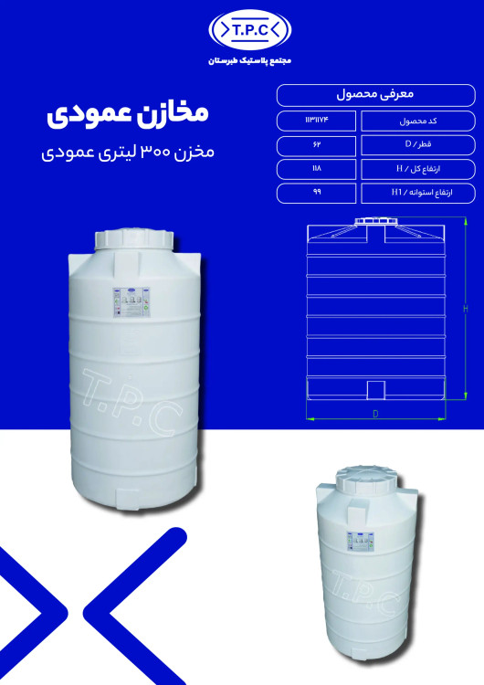 مخزن 300 لیتری عمودی 3لایه آنتی باکتریال طبرستان