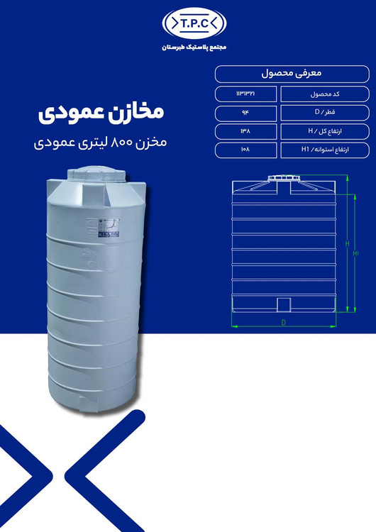 مخزن 800 لیتری عمودی 3لایه آنتی باکتریال طبرستان