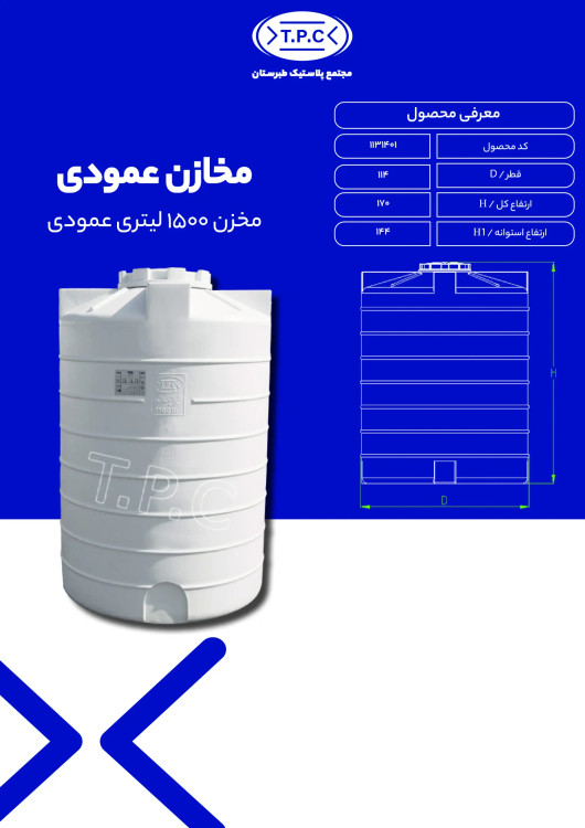 مخزن 1500 لیتری عمودی 3لایه آنتی باکتریال طبرستان