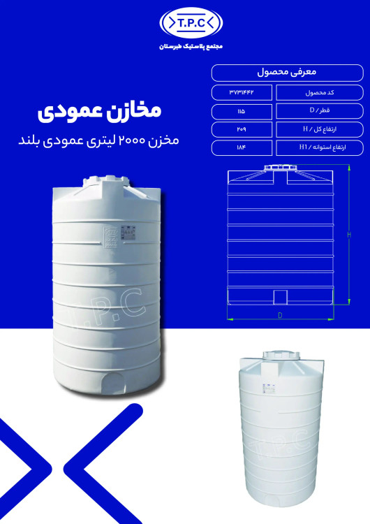 مخزن 2000 لیتری عمودی بلند 3لایه آنتی باکتریال طبرستان