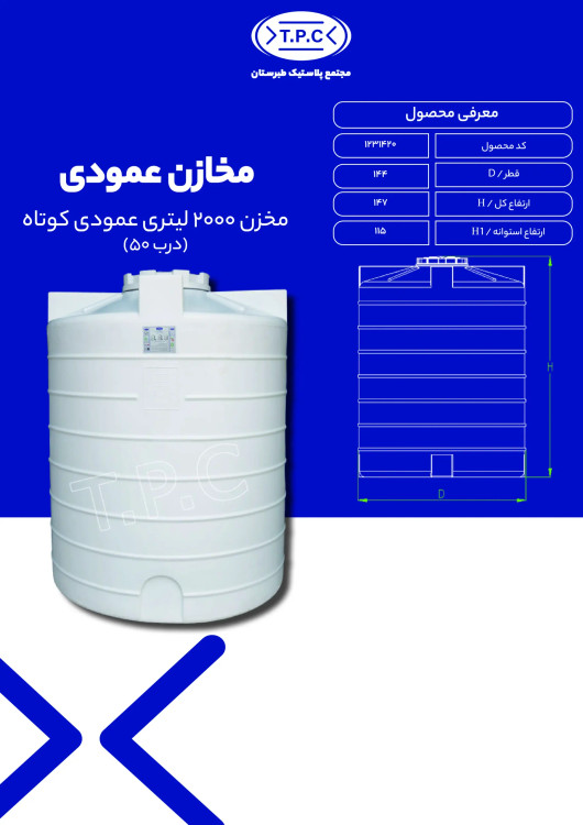 مخزن 2000 لیتری عمودی کوتاه درب 50 سانتی 3لایه آنتی باکتریال طبرستان