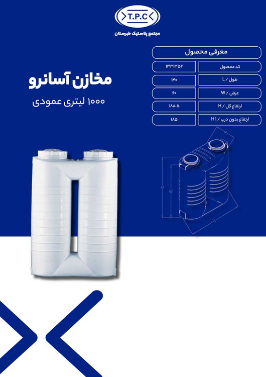 مخزن 1000 لیتری عمودی آسان رو 3لایه آنتی باکتریال طبرستان