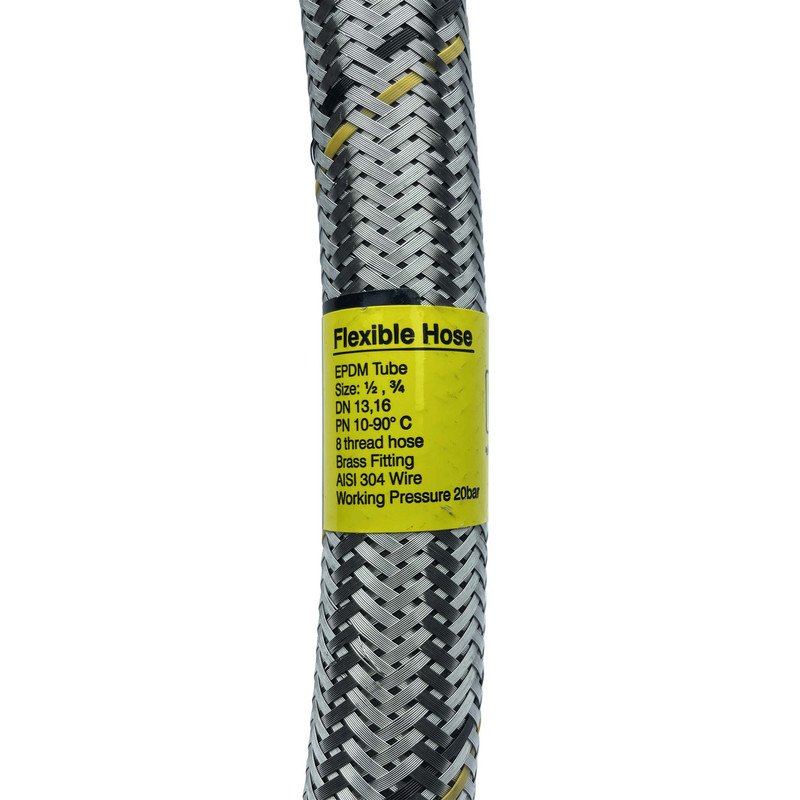 جنس بافت: 8 رشته استیل 304 جنس تیوپ: EPDM جنس اتصالات: برنج جنس بوش: استیل سایز مهره و روزوه: 3/4 یا 25
